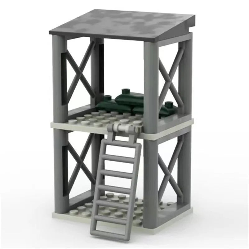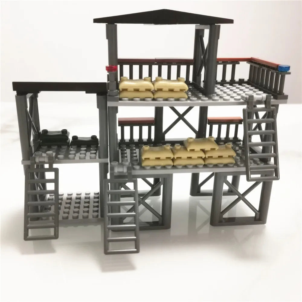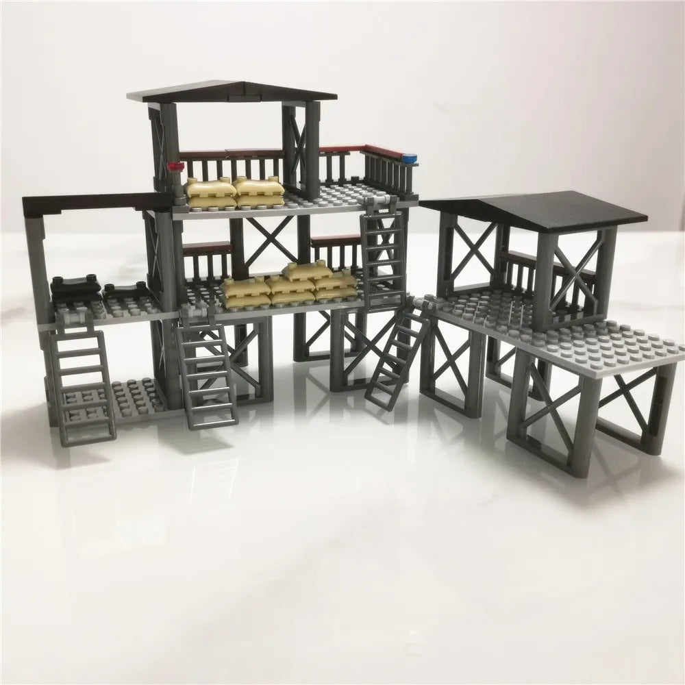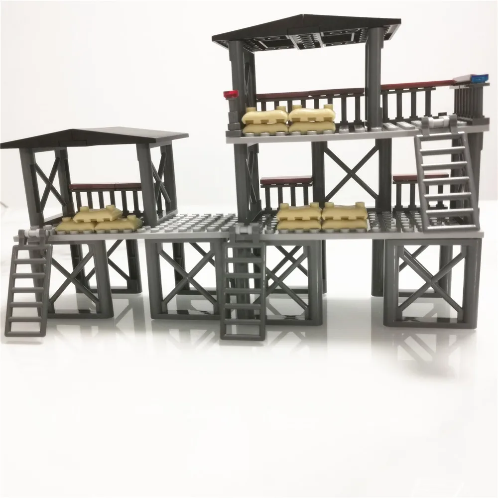ww2 military outpost Guard tower soldier Weapons base building blocks DIY Creative moc military construction Bricks toys for boy