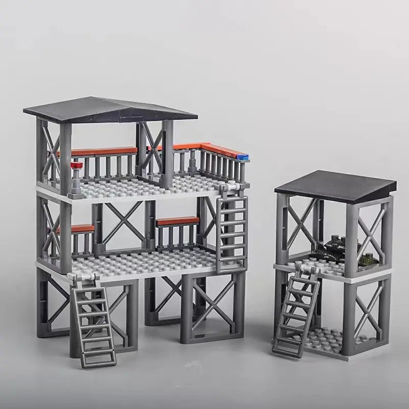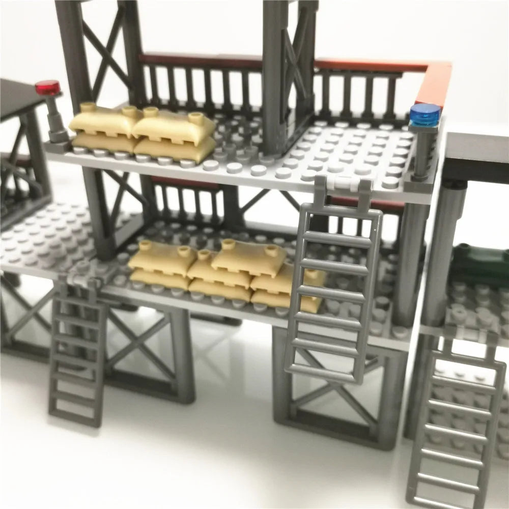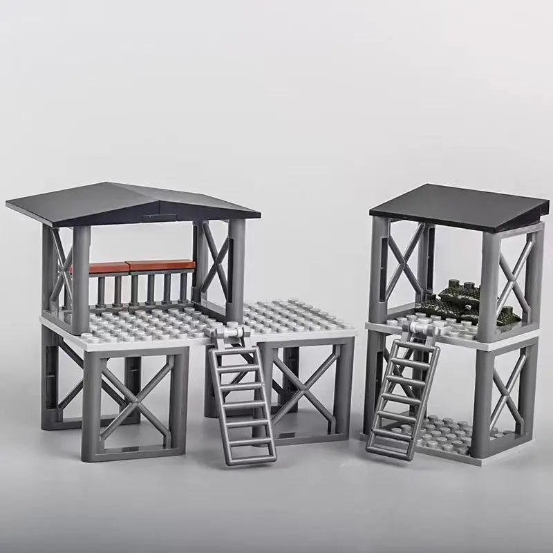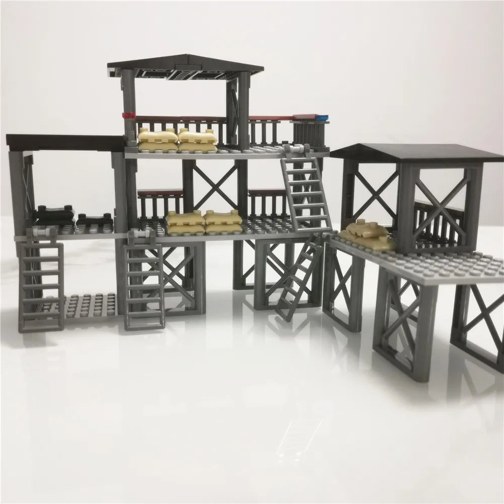 ww2 military outpost Guard tower soldier Weapons base building blocks DIY Creative moc military construction Bricks toys for boy