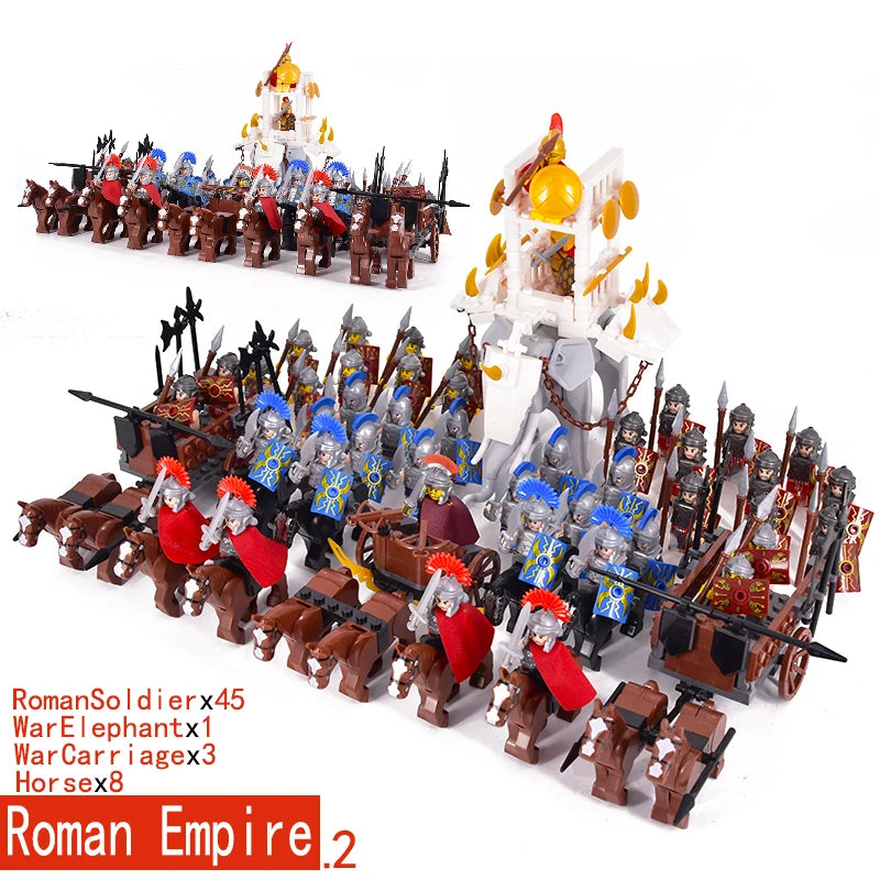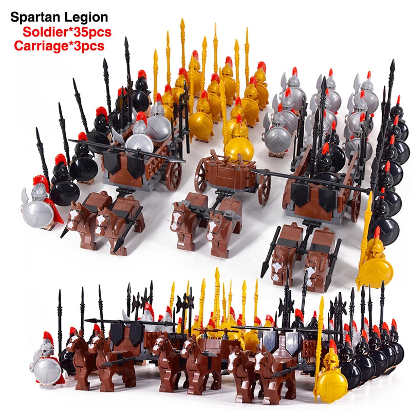 MOC Roman Empire Spartan Army Medieval Soldier Chariot Building Block Bricks Ancient Military War Helmet Toys For Children