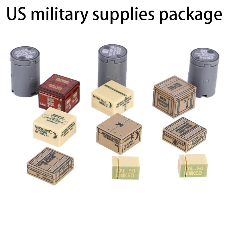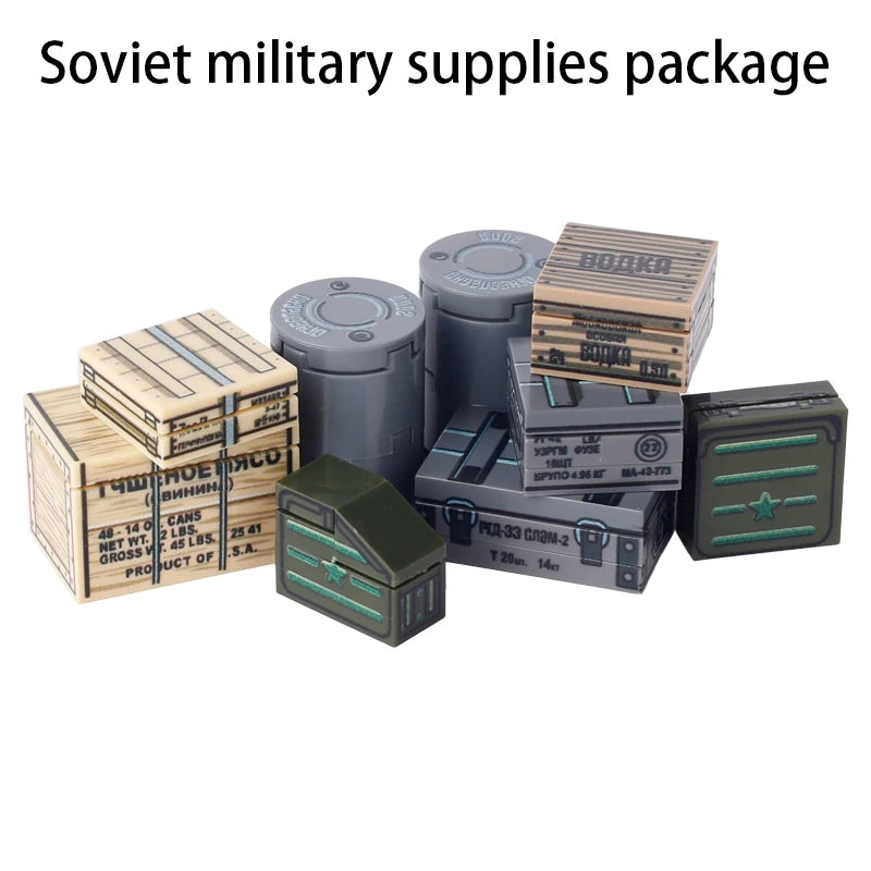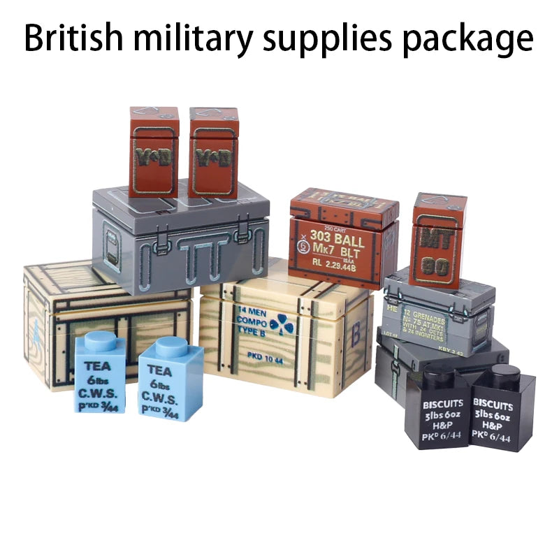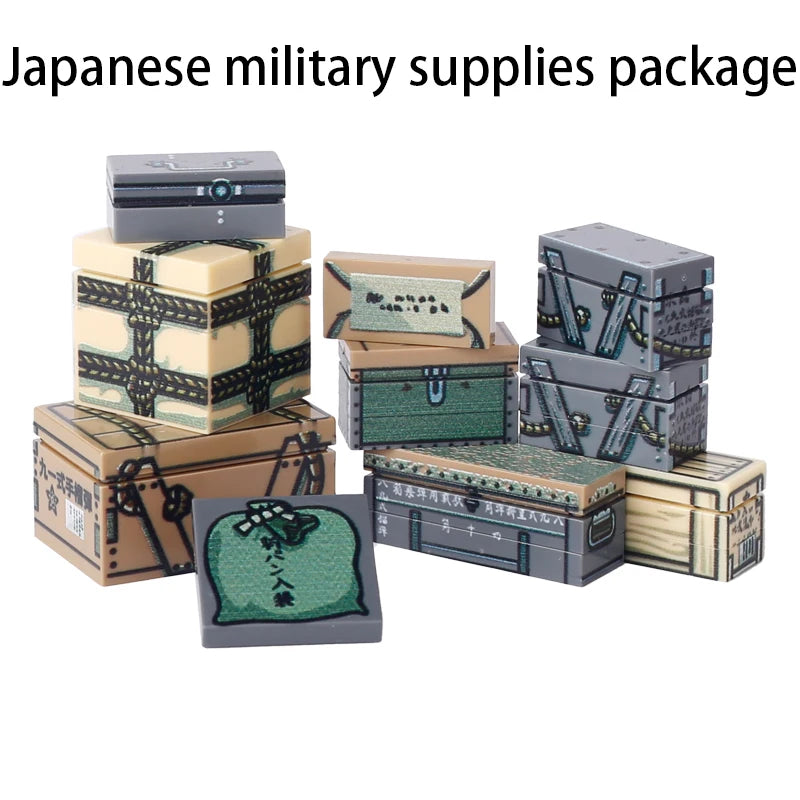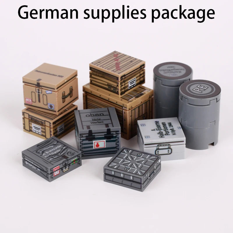 MOC Military Printed Parts Building Block Soldier Material Package Ammunition Box German Soviet British Weapon Mini Bricks Toys