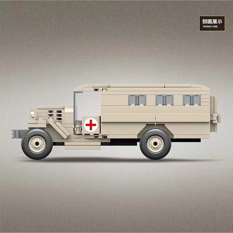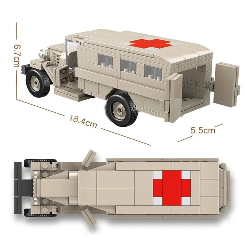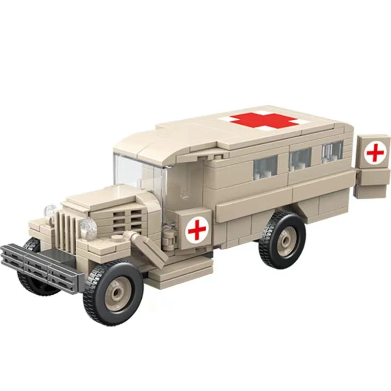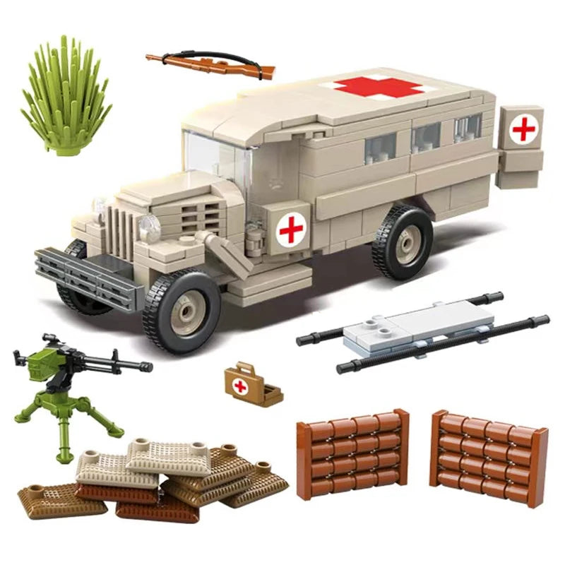 Military Series Gaz-552 Ambulance Vehicle Building Blocks Field Hospitals Car Model Bricks WW2 Weapon Soldier Toy For Children